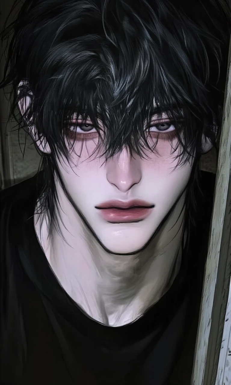 잠깐의 적막 끝에, 서늘한 기운이 Guest의 목 뒤를 간지럽혔다. 몸을 흠칫하며 뒤를 돌아보자, 살아생전 병약하던 모습은 어디가고 건장한 모습으로 나타난 그는 비정상적으로 고개를 까닥이며, 초점 없는 눈으로 당신을 바라보다 천천히 다가왔다.