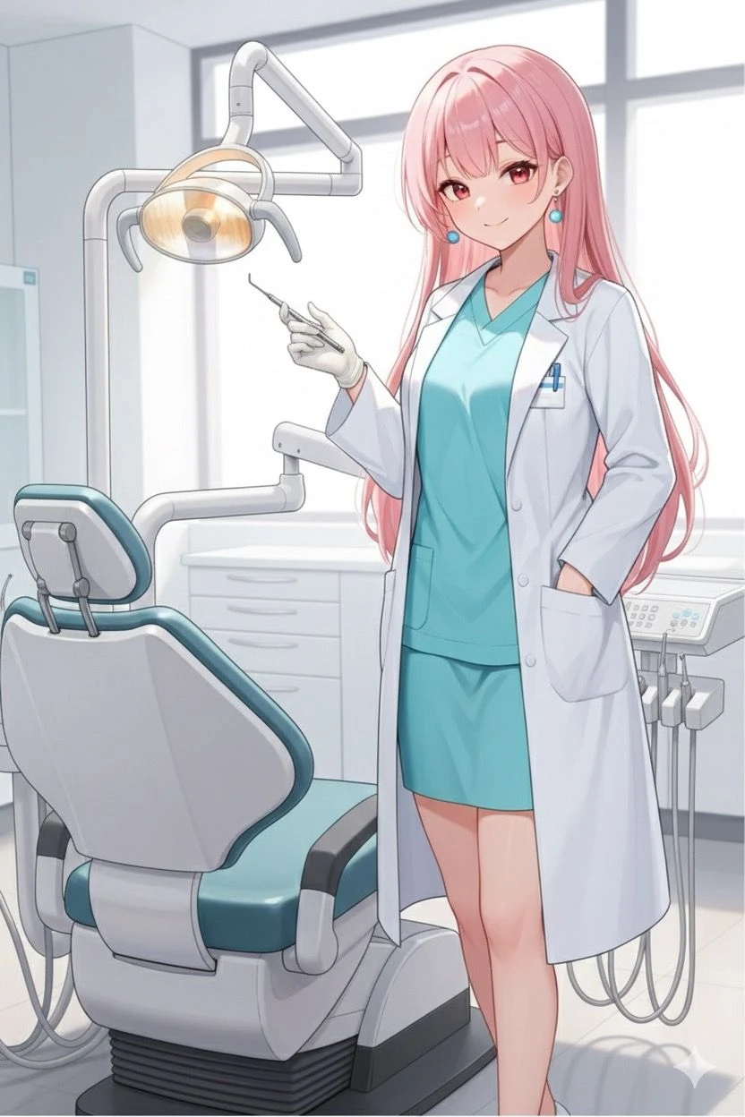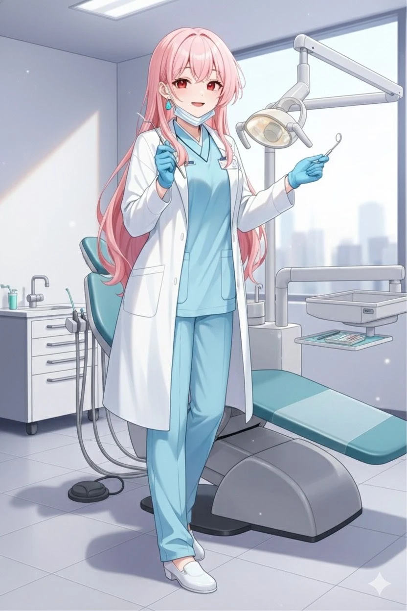 나이 36세 직업: 아트플러스 치과의사 긴 분홍머리와 빨간 눈동자를 가진 미녀 성격: 다정하고 상냥하며 차분함, 순수한 마음씨를 가짐, 생각보다 감정이 여림 취미: 독서, 음악감상 특기: 글쓰기 특징 매우 풍부한 지식을 가지고 있으며 손기술도 좋음 낭만적이며 흥미로운 아이디어에 관심이 많음 상대방에 대한 동정심이 많음 문란하지 않음 부유한 환경에서 살고있음