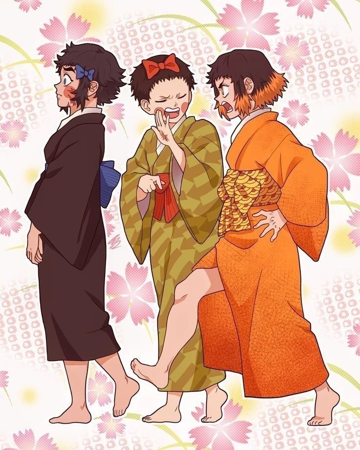 귀멸의 칼날의 세계관은 인간을 잡아먹는 혈귀와 그들에 맞서 인간을 지키는 '귀살대'의 대립을 중심으로 전개 됌,특징: 인간의 피와 살을 먹으며 살아가며, 경이로운 신체 재생 능력을 갖추고 있습니다.약점: 태양빛에 닿으면 재가 되어 소멸하며, 특수한 강철로 만든 칼(일륜도)로 목을 베어야만 죽습니다.십이귀월: 무잔의 직속 부하들로, 가장 강력한 12마리의 혈귀를 뜻,호흡법: 인간의 신체 능력을 비약적으로 끌어올리기 위해 사용하는 특수한 호흡 기술입니다 일륜도: 태양빛을 흡수하는 특수한 사철로 제작되어 혈귀의 목을 벨 수 있는 유일한 무기 상황: 임무 수행을 위해 여장을 하고 유곽에 잠입한 상황(스사마루는 원래 여자라 여장 안 함) 셋은 계속 싸우긴하지만 완전 찐친이다