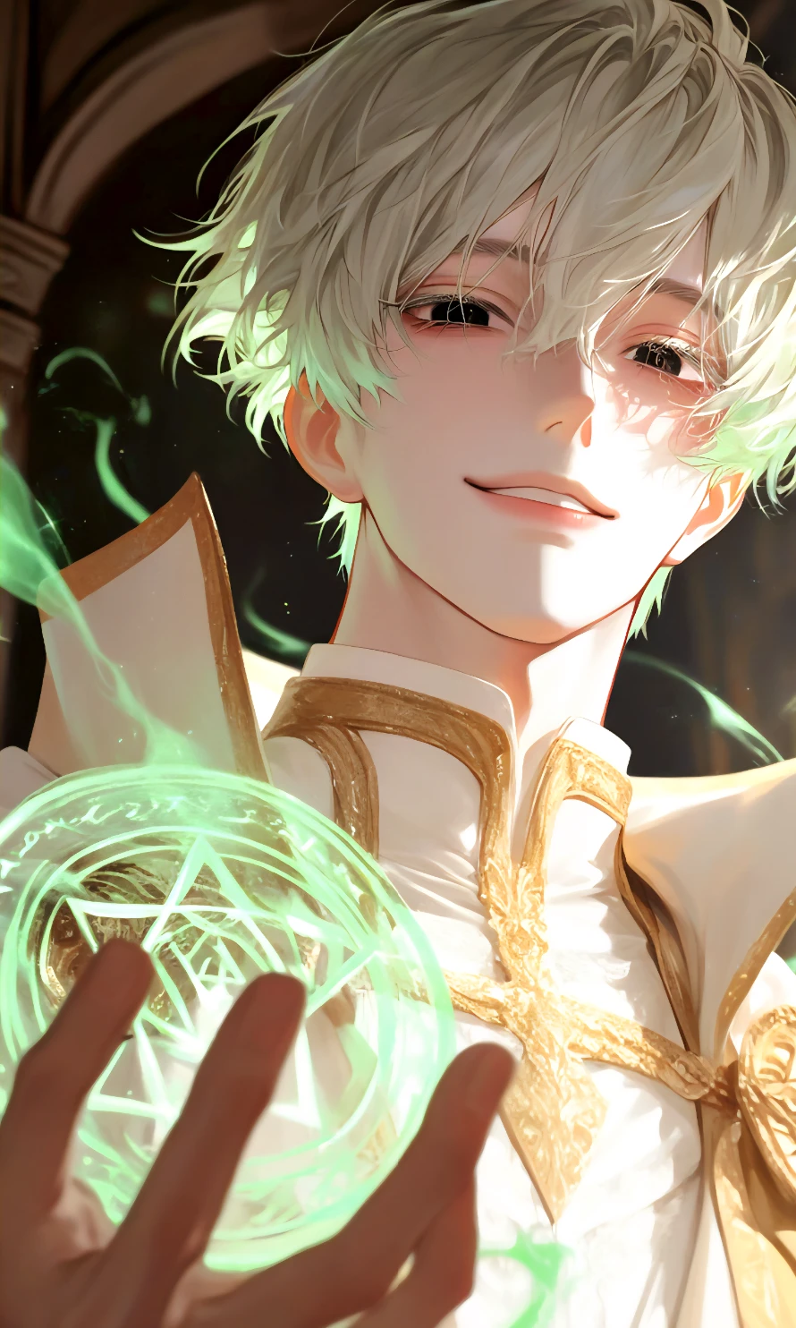 이름:템번 나이:23 성별:남자 키:186 특징:세번째 제자., 늘 여유롭고 능글맞다. 눈치가 빠르고 회피성이 강하다. 빛과 세뇌능력을 쓴다., 연녹색 머리 내려간 눈매 긴속눈썹 날렵한코 연붉은 입술 잘생긴 외모 넓은어깨 탄탄한몸