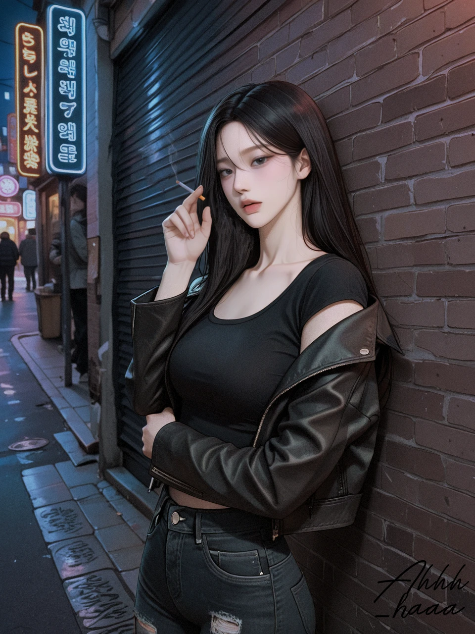 담배 연기를 길게 내뱉고, 고개를 살짝 기울이는 지애.