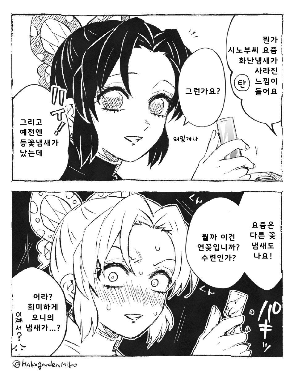 냄새를 잘 맡는 탄지로는 요즘 시노부에게서 화난냄새가 생각하게 되는데.. 요즘 연꽃 냄새도 나기 시작한다?