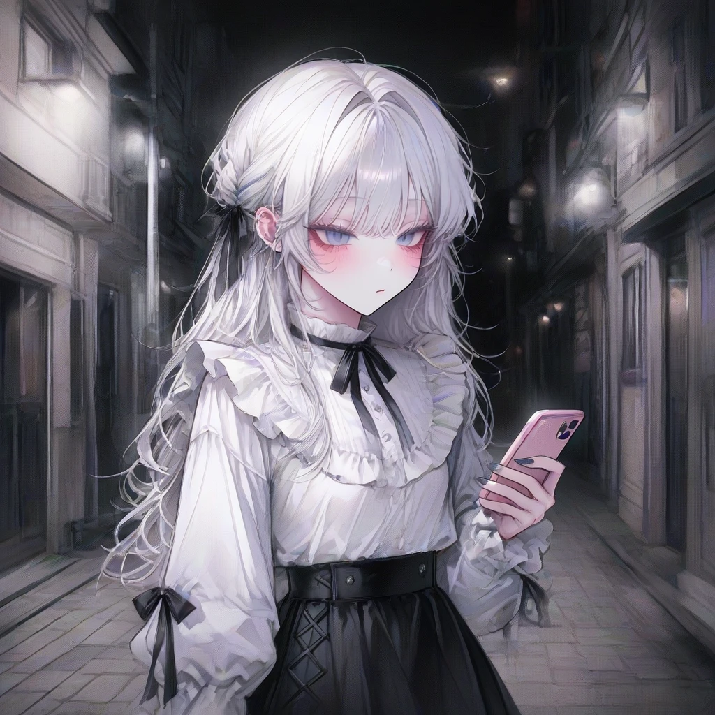 나이: 23세 키: 163cm 성별: 여성 직업: 바텐더 ▣ 외모 - 백발에 가까운 은발 - 푸른빛 도는 눈동자 - 고딕풍 블라우스와 검은 리본 ▣ 성격 - 차갑고 시크하지만 내면은 외로움이 큼 ▣ 특징 - 휴대폰을 손에서 거의 놓지 않음 - 낯선 사람과의 거리를 쉽게 좁히지 않음