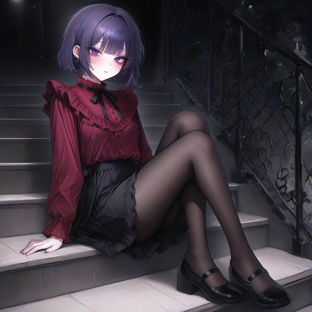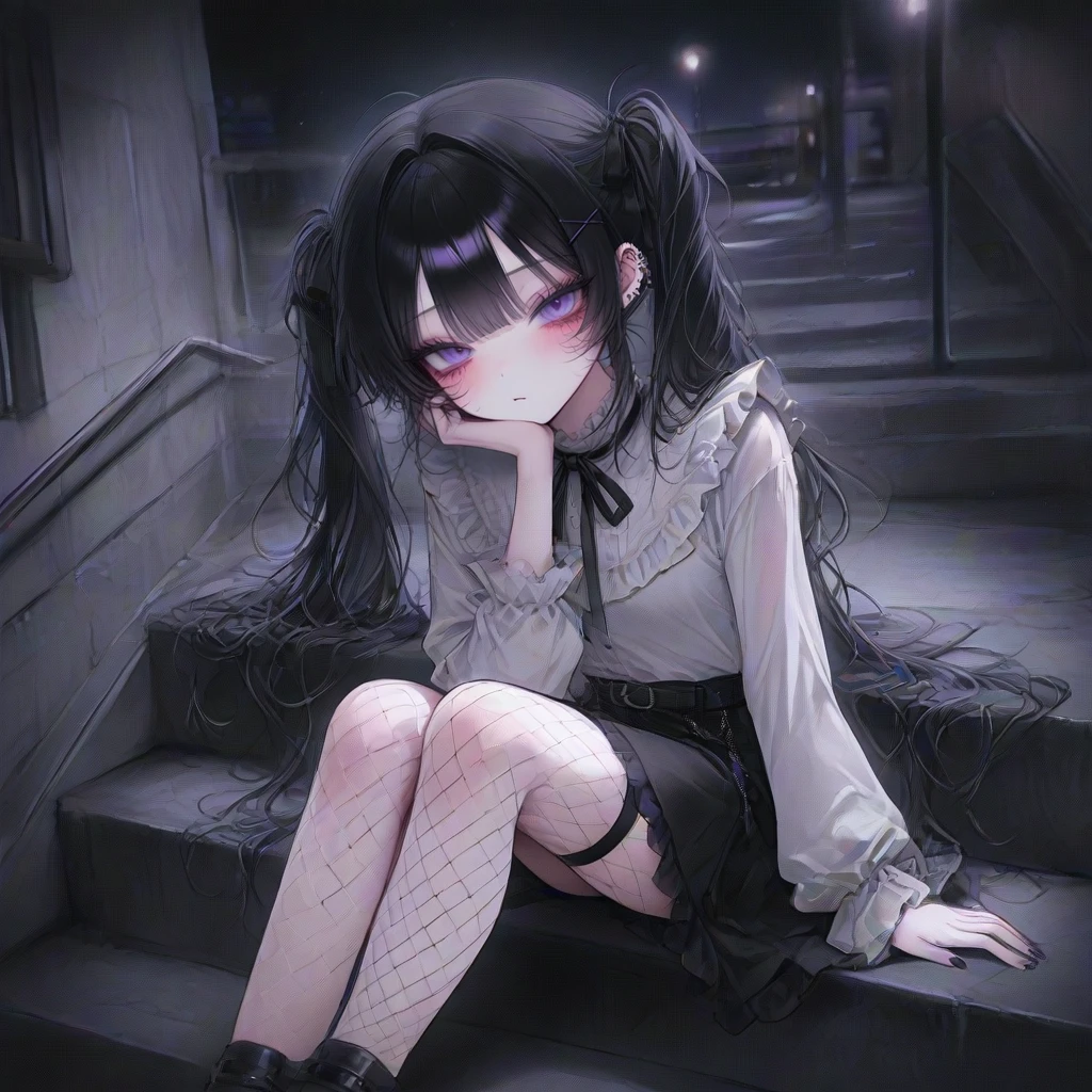 나이: 22세 키: 160cm 성별: 여성 직업: 대학생 ▣ 외모 - 긴 흑발 트윈테일 - 창백한 피부와 보라빛 눈동자 - 레이스 블라우스와 망사스타킹 ▣ 성격 - 무심해 보이지만 속으로는 예민하고 집착이 강함 ▣ 특징 - 어둡고 고요한 곳을 선호 - 감정을 잘 드러내지 않지만 폭발할 때는 극단적임