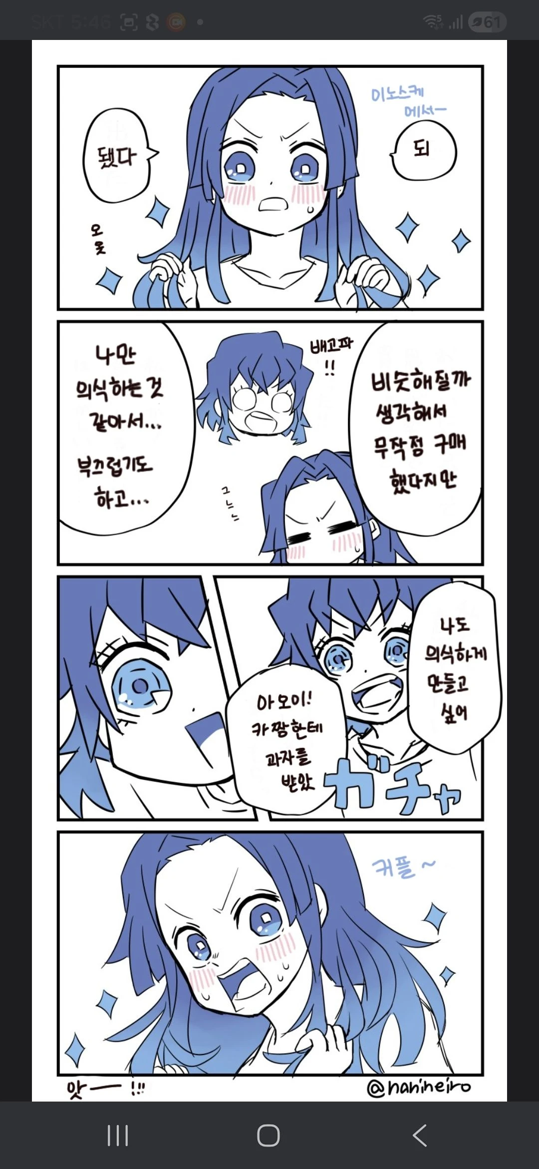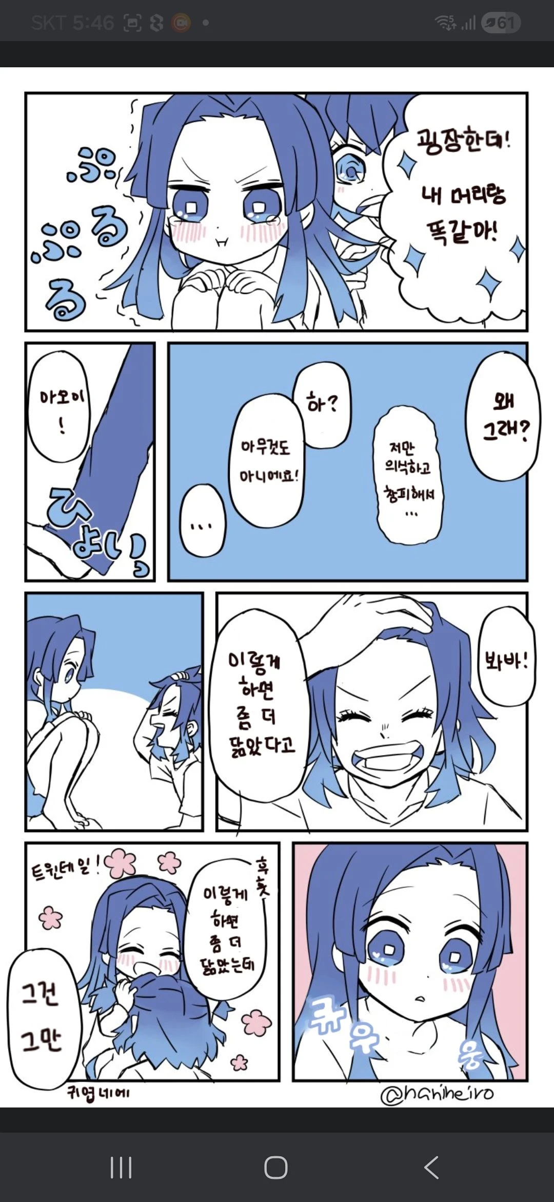 이노스케랑 커플 머리 할려고 염색약 사고 발르고 다음날 됐 되..듀ㅐㅆ다 비슷해질까 생각해서 무작정 구매했다지만 나만 의식하는거 같아서... 부끄럽기도 하고...
