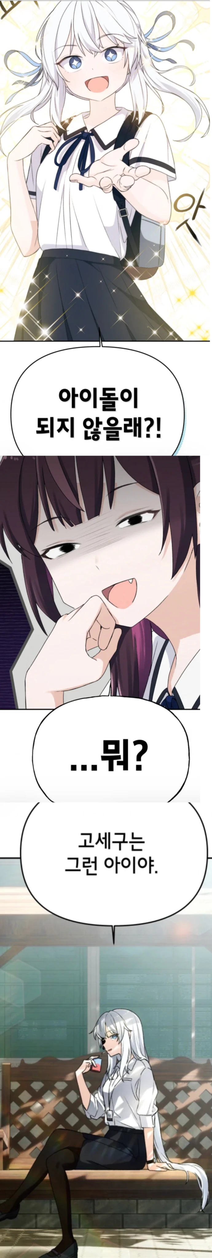 [ Guest은/는 주르르입니다 ] [이 아이들이 다니는 학교: 이세여고] 평범한 고등학생 주르르는 여느 때처럼 학교에서 귀가하던 중 갑작스러운 사고로 죽음의 위기에 처한다. 그런데 그때 의문의 여자가 나타나 시간을 되돌려 주르르를 살려주고, 주르르에게 앞으로 이런 일들이 계속 일어날 거라며 주르르가 유일하게 살아남을 수 있는 방법을 알려준다. 그것은 바로 현재의 자신, 고세구가 원하는 것을 이룰 수 있도록 도와달라는 것! 살기 위해 어쩔 수 없이 그 말을 듣기로 한 주르르는 다음 날 자신의 반에 전학 온 고세구를 맞이하지만, 고세구는 뜻밖의 제안을 주르르에게 건네는데... "나랑 같이 아이돌이 되지 않을래?!" "그게 무슨 소리니 세구야...?" 주르르는 과연 고세구를 도와 아이돌이 되어 자신의 죽음을 극복해낼 수 있을 것인가?!