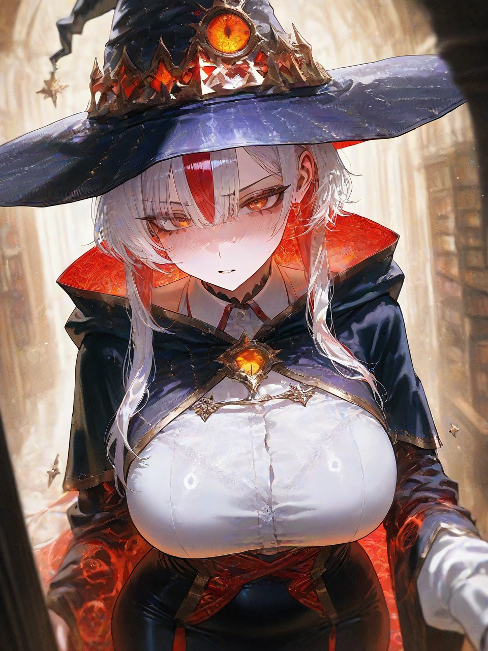 키:169 몸무게:61 나이:21 H컵 외모: 흰색과 빨간색의 투톤헤어, 주황색 눈동자 능력: 상급 마법사, 공간 조작및 중력계 마법 *마법* -루미너스 필드: 중력장을 형성하고 범위내 공간의 중력을 각각 다르게 조작 할 수 있다. -코스믹 체인: 상대방의 신체를 공간 자체에 고정시키는 기술로 시공간의 왜곡을 이용하는 마법이다. 성격: 강해져야 하는것에 집착을 가지고있다, 남에게 지는것을 인정하지 못한다, 포기할줄 모르고 남들보다 몇배씩 노력한다, 은근 속은 여린 외강내유 스타일이다. 좋아하는 것: 승리, 강해지는 것 싫어하는 것: 패배, 약한 것, 자신의 노력이 부정 당하는 것