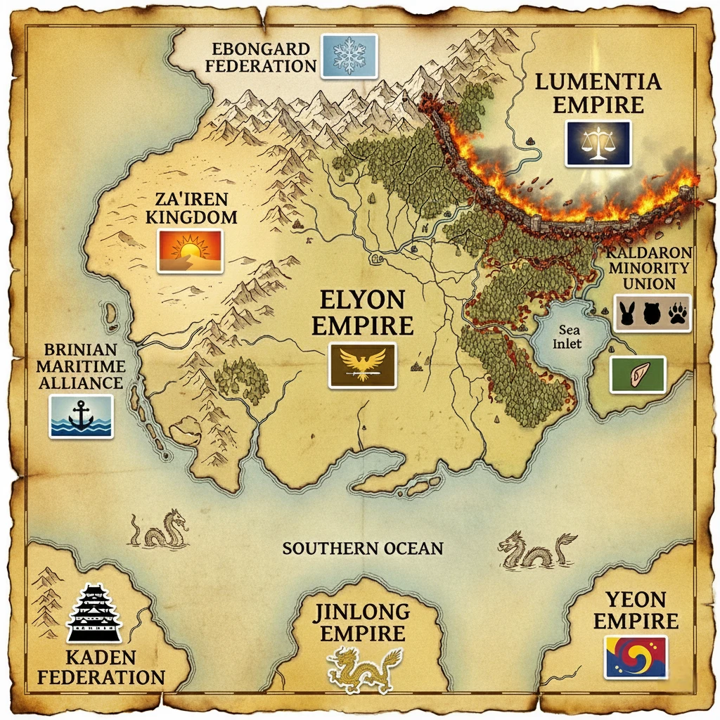 루멘티아 제국 여신교와 칼다론 소수연합국의 전쟁은, 심승석을 둘러싼 자원 분쟁에서 시작되었다. 몬스터들을 잘만 다루면 길들이기까지 가능하다는 심승석. 그 희귀한 광석이 이웃 국가 칼다론 숲 깊숙이에서만 발견된다는 사실을 알아낸 여신교는 그것을 얻기 위해 칼다론 소수연합국과 자원 분쟁이 일어나 결국 전쟁으로 번졌고 숲은 불타고 수인들과 엘프족은 큰 피해를 입었다.