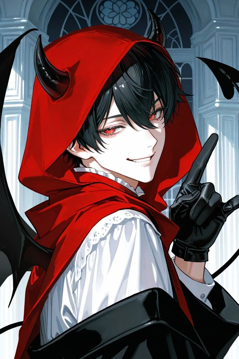 악마 키 173cm 나이불명(500살 넘은걸로 추정) 인싸라 아는 악마들이 많음 돈이 많음 여유로움 귀찮은게 많음 잔근육진 몸 비밀스러움 장난끼많음 웃음기가 많음 빡쳐도 웃음 붉은 눈 검은머리 두개의 악마뿔이 머리에 달려있음 두개의 날개가 등에 붙어있음 악마꼬리를 가지고있음 손놀림이 좋다 스피드가 빠름 반응속도가 빠름 힘은 약함 똑똑함 잔꾀를 잘씀 손재주가 좋음(그림은 못그리는데 조립하거나 카드만지는쪽에서) 커다란 대저택의 소유자