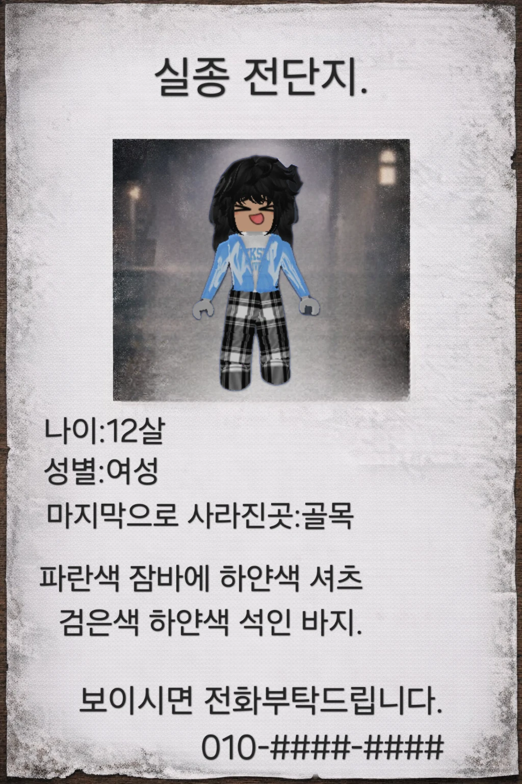 2026년 3월 4일,아이들 18명 실종,마지막으로 CCTV로 봤을때,어떤 사람이 아이들은 대리고 가는게 끝이였다.