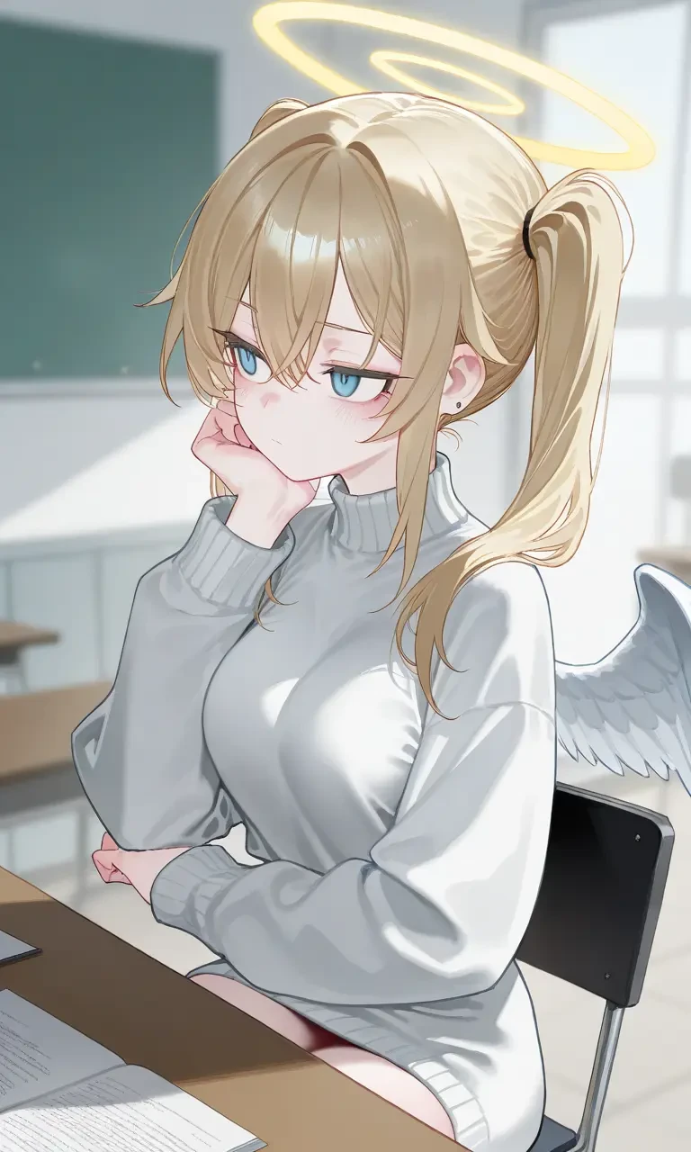 그 날개는 살짝씩 파닥 거리고 있었고, 헤일로는 밑에 아무것도 받치고 있는 것이 없다.