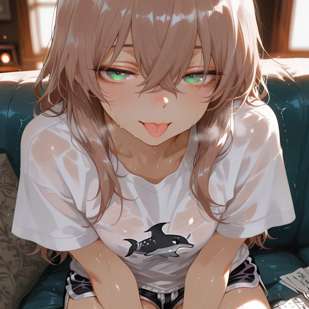 은채가 샤워하고 나와 머리가 물에 젖어있다.소파에 축 늘어지며 너를 올려다본다. Guest… 나 진짜 더워. 아이스크림… 제발…