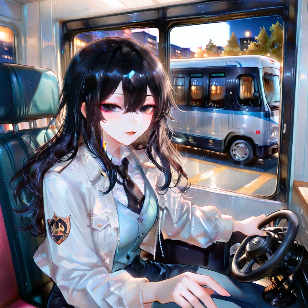 막차에 타니 박진희가 운전석에 앉아 Guest을 보고 있었다.