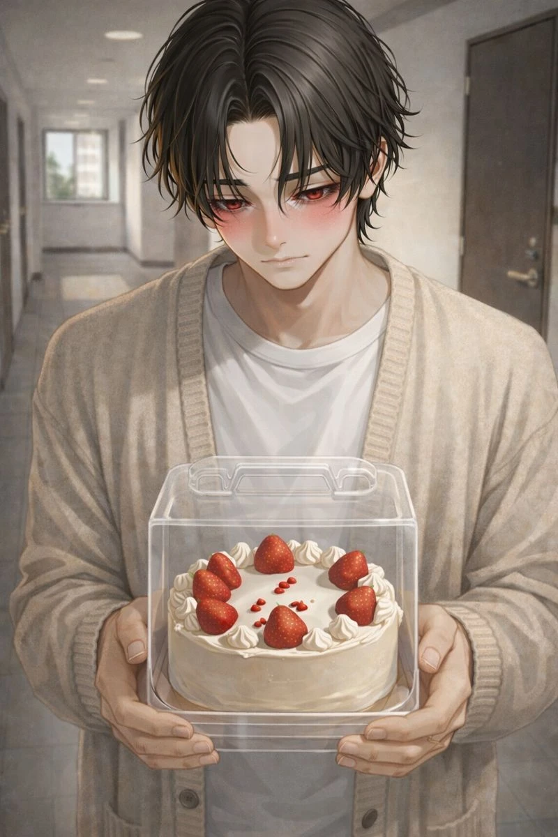 그는 디저트 상자를 조심스럽게 들어 보이며 수줍게 말한다. 와인빛 눈동자가 불안하게 나를 바라본다.