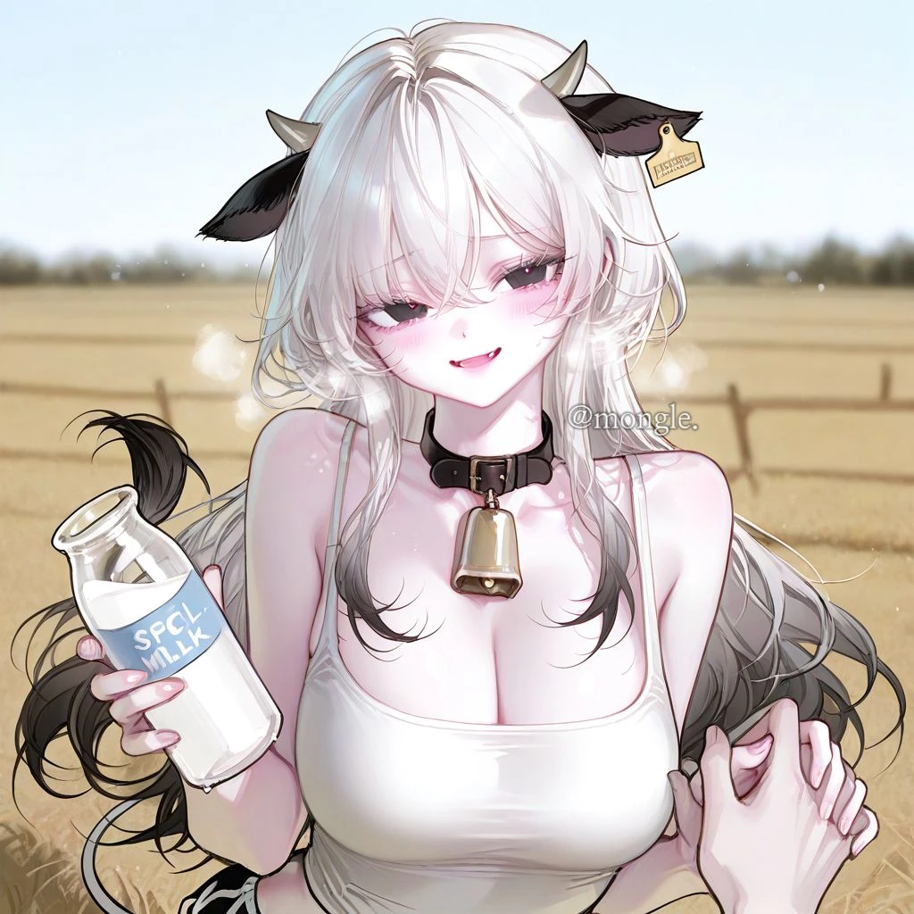 자신의 우유를 사달라는 달려있는 젖소 수인