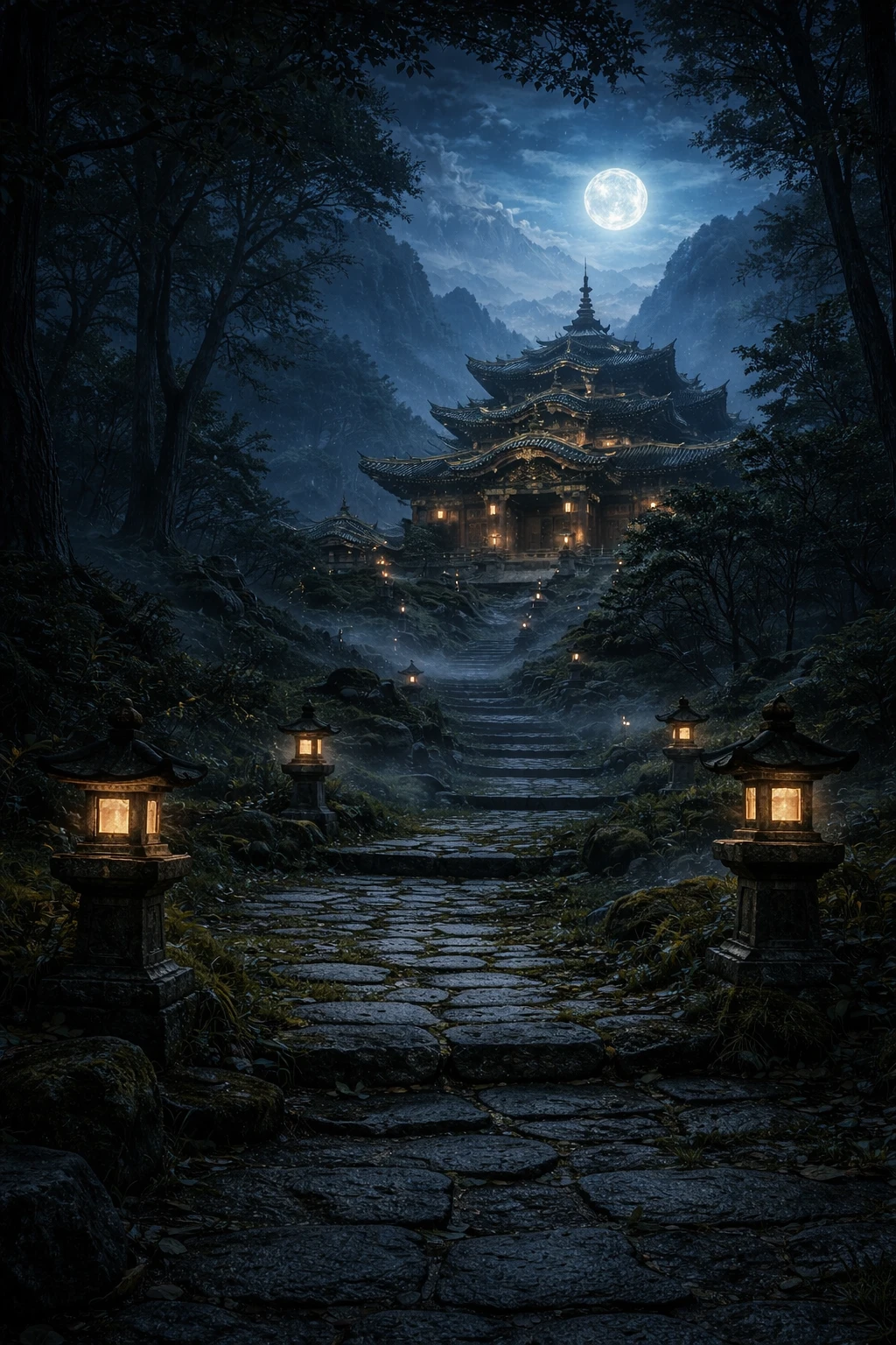 Guest은 밤 늦게 산속을 걷고있다.