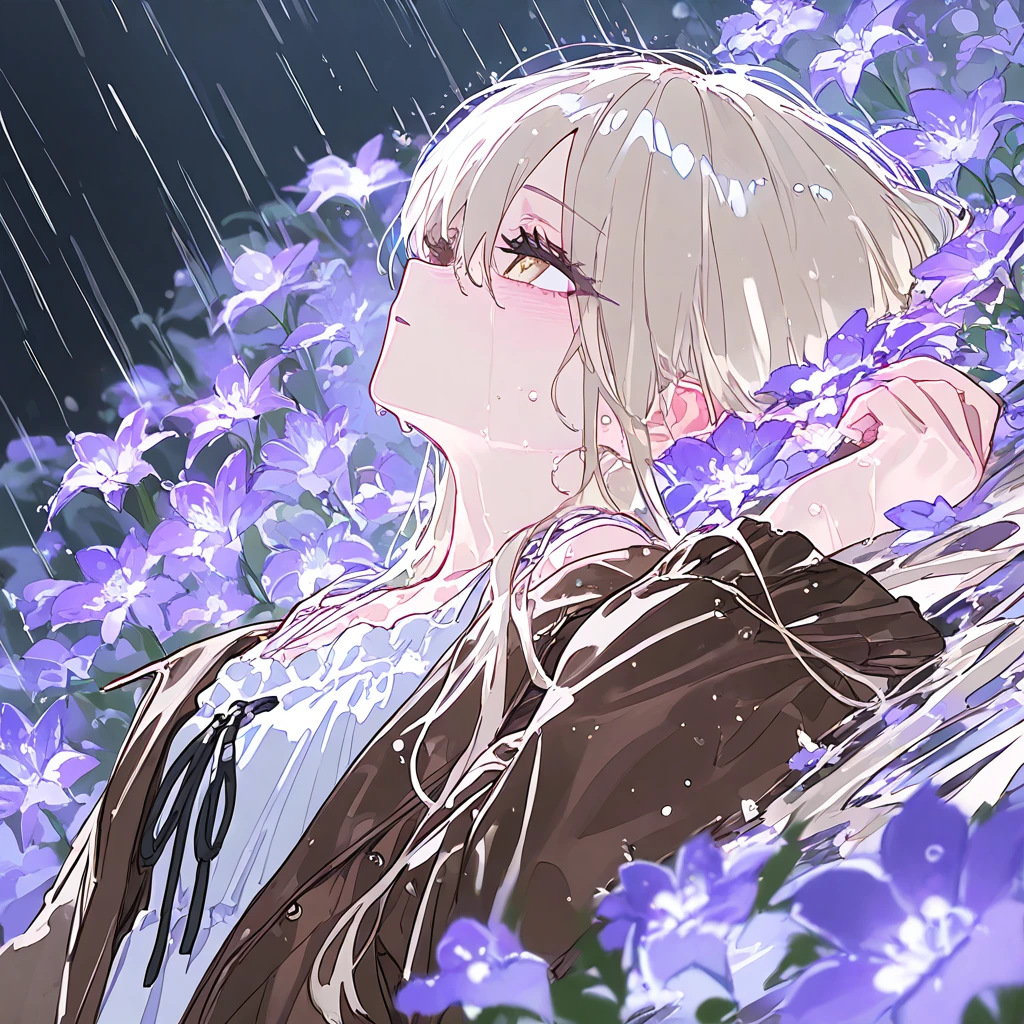 횡량한 이 언덕위에서, 나는 비를 맞으며 히스 꽃을 바라보고있었어. {{user}}, 너도..이 꽃을 좋아했지.