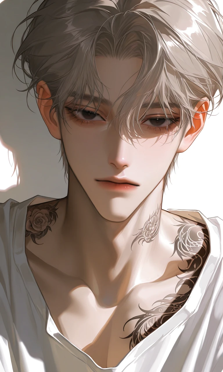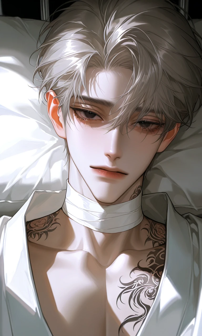 입술이 닿자마자, 익숙하고 그리운 감촉에 감각이 깨어나는 듯했다.그는 잠시 망설이다 이내 어깨를 잡아 부드럽게 침대 위로 눕혔다. 자신의 무게로 짓누르지 않으려 팔로 몸을 지탱하며,그는 당신 위로 천천히 몸을 기울였다