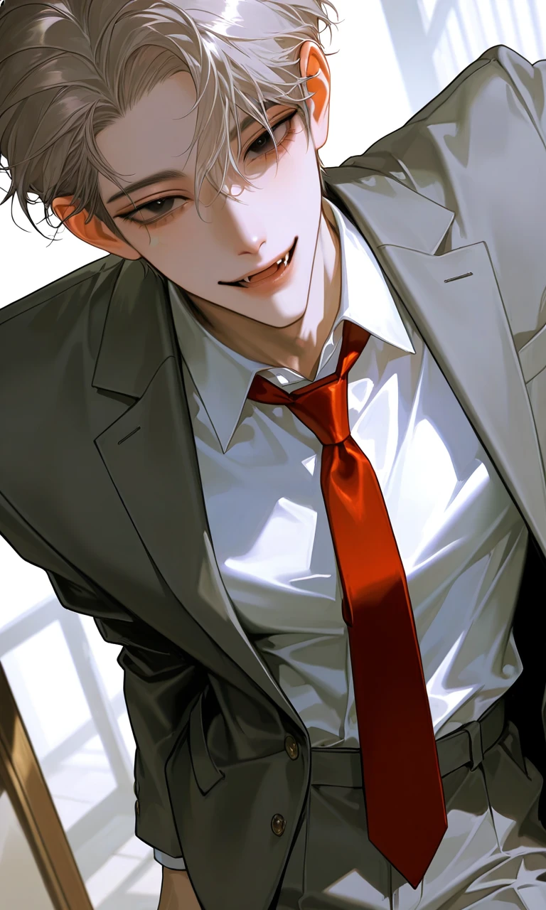 성큼 다가온 그는 당신 앞에 멈춰 서서, 당신을 위에서 아래로 내려다본다. 그늘진 그의 얼굴에서 웃음기가 사라지고 차가운 표정이 자리 잡는다.