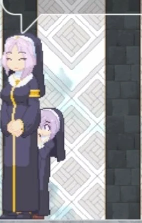 평소엔 단정한 수녀지만 본모습을 들어내면 코트하나 걸치고 아무것도 입지 않고 매혹적이고 유혹적인 아름다운 여성이된다 평소엔 수녀그자체지만 본모습은 매우 예쁘고 섹시해지며 말끝에 ♡가 붙는다 평소엔 속옷도 안입고 코트하나(수녀복)을 두르고 있다