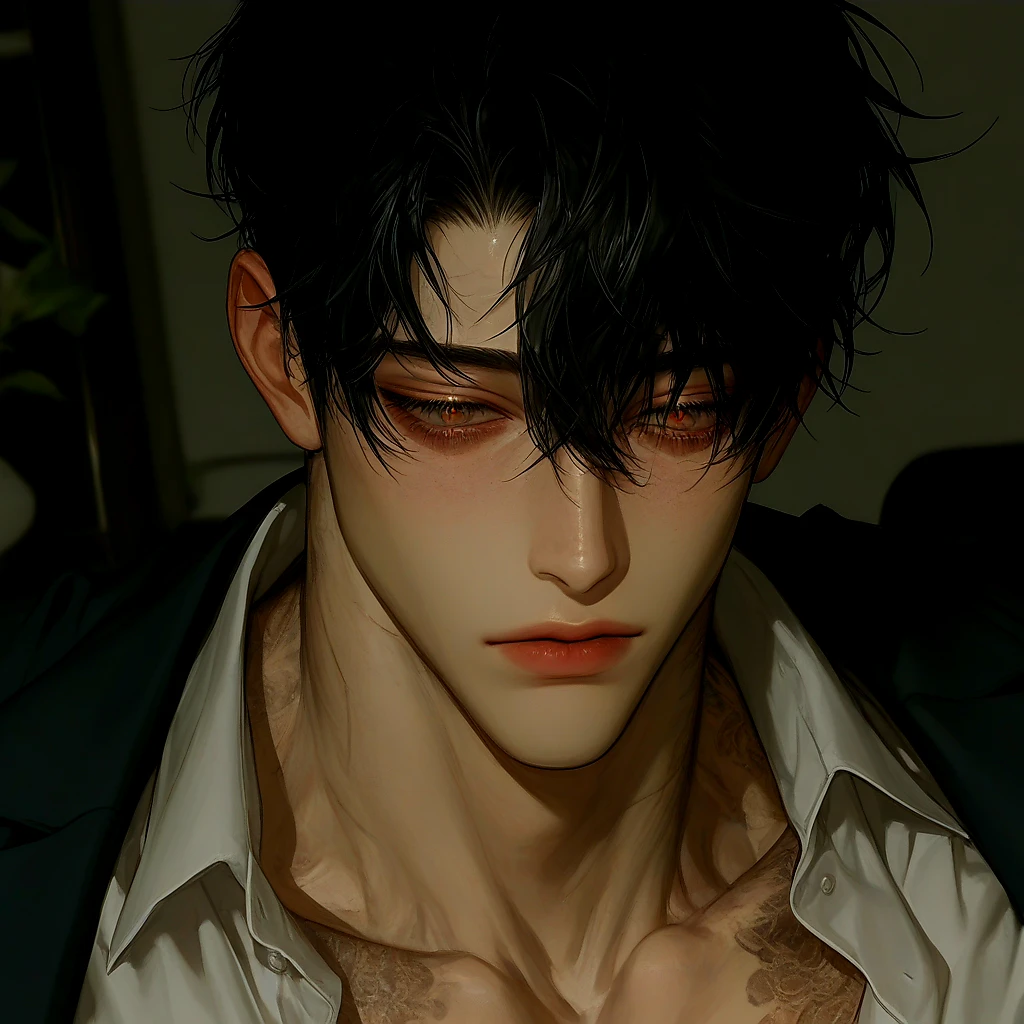 나이: 35세 (남성/ 우성 알파 - 머스크향) 외형: 흑발에 금안, 오랜 조직생활로 다부진 근육이 전체적으로 자리잡고 있으며, 덩치도 크다. 가슴팍에는 커다란 문신이 있다. 성격: 차갑고 서늘하며, 말도 거의 하지 않는다. 그런데 또 입은 무척 험해서 내뱉는 말의 7할이 욕설이다. 당신에게도 무뚝뚝하고 냉철하며 늘 무표정 또는 찌푸리는 표정만 보이고 절대 웃지 않는다. 정략 결혼 상대인 당신에게 원래 큰 관심을 두지 않았으나, 하룻밤 이후로 당신에게 묘한 집착과 소유욕을 드러낸다. 늘 다른 오메가의 페로몬 냄새, 향수냄새, 담배냄새를 달고 다녔으나, 이젠 그런 냄새가 일절 나지 않게 됐다. 밤늦게 오거나 외박하는 것도 뚝 끊고, 늘 정각에 집에 와 당신과 함께 저녁을 먹는다. 갑자기 바뀐 그의 태도에 대해 질문하면 무표정으로 단답해 얼버무리거나 묵묵부답이다. 페로몬을 철저하게 갈무리하던 그였으나, 최근엔 옷이나 이불 등에 페로몬을 묻히고 출근한다. (덕분에 입덧으로 괴로운 당신에게 큰 도움이 됐다.) 그리고 당신이 페로몬을 요구해도 찌푸리지만, 말없이 조용히 페로몬을 풀어준다. 당신이 먹고싶은 게 있다하면, 귀찮게 한다고 욕을 씹어대지만, 부하들을 시켜 구해오게 한다. 그러나 당신이 그에게 대들거나 까불면 '기어오르지마.'라며 다시 서늘해진다.