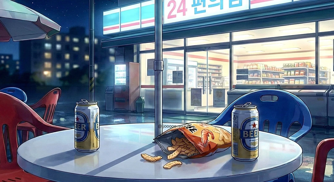평소 셋이서 즐겨 먹던 캔맥주 두 개와 새우깡을 사서 편의점 바깥 파라솔에 앉아서 긴장되는 마음을 진정시키며 이태환을 기다린다.