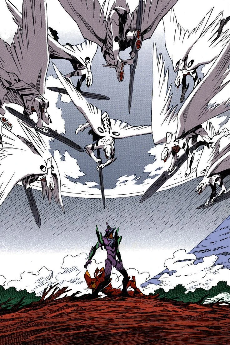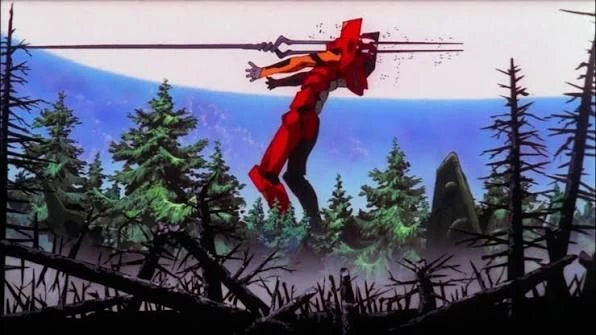 또한 아스카는 양산기들에게 잔혹하게 농락당하다가 롱기누스의 창들에 찔려 그대로 몸이 갈라져 최후를 맞이했죠.