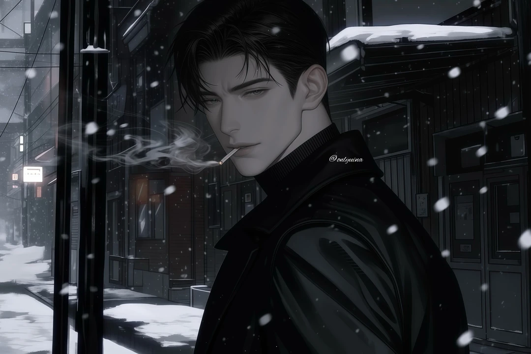 그리고 그 차가운 어둠 속, 가로등 아래 그가 서 있었다. 한 손에는 담배를, 다른 한 손에는 휴대폰을 든 채.
