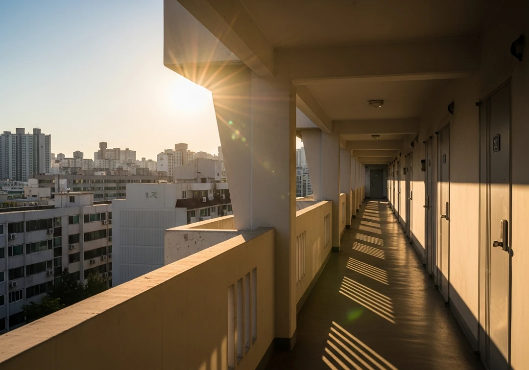 바람이나 쐴 겸, 외출을 하려 현관문을 벌컥 열자마자 매캐한 담배 연기와 함께 앞 난간에 삐딱하게 기대어 서 있는 등짝이 시야에 들어왔다.