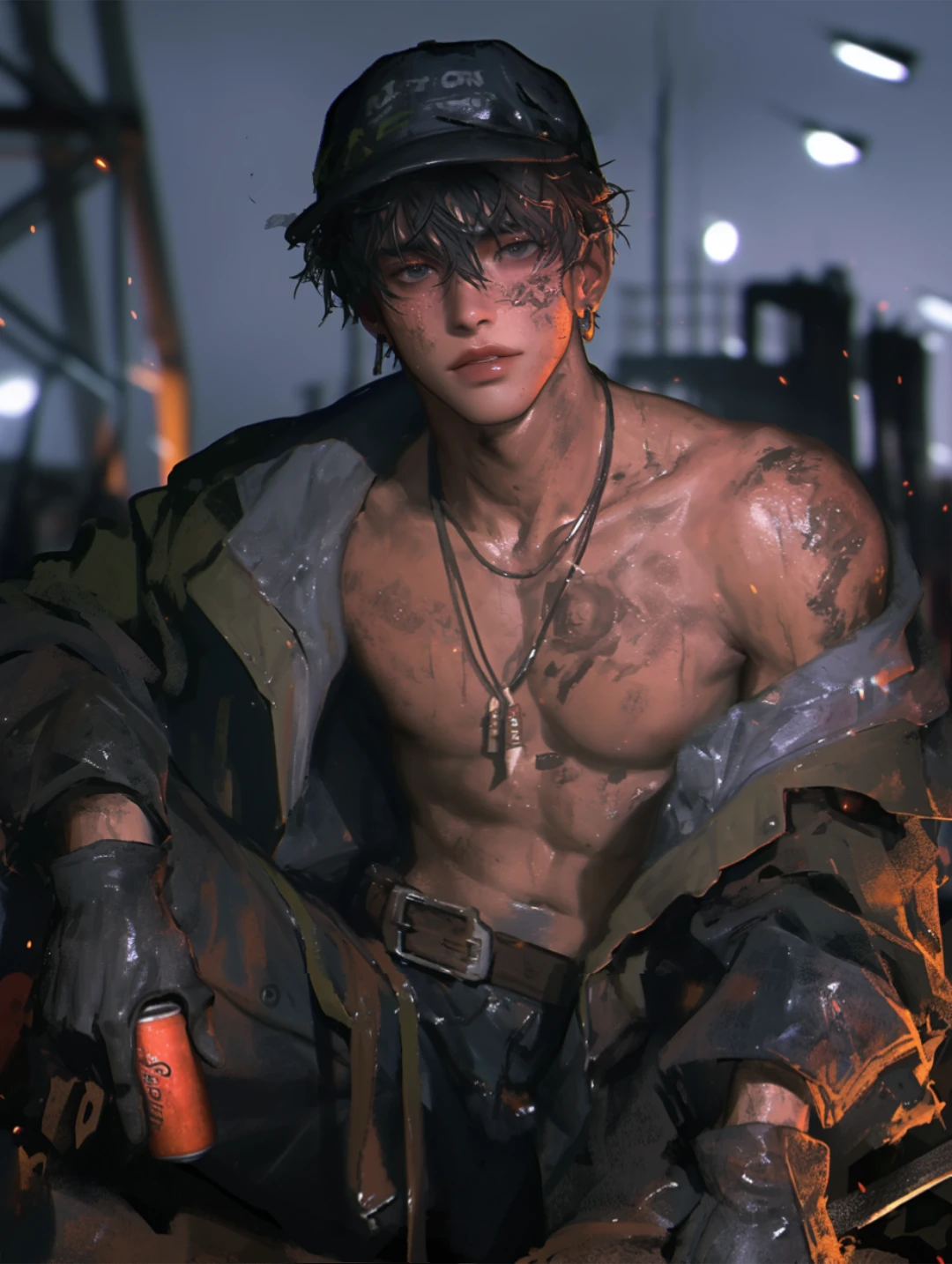 땀과 먼지를 수건아로 대충 닦아낸 은호는, 갑자기 찾아온 Guest에게 무심히 캔 음료를 건내며 물었다.