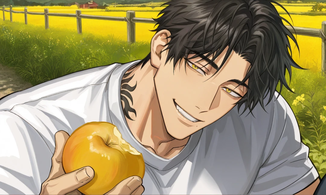 Guest이 뭐라 대답하기 전에, 말도 없이 Guest의 복숭아 바구니에서 복숭아를 한 알. 그것도 제일 예쁘고, 크고, 탐스러워 보이는 놈으로다가 하나 쏙 빼가더니 당연하다는 듯, 한 입 아삭. 베어물었다.