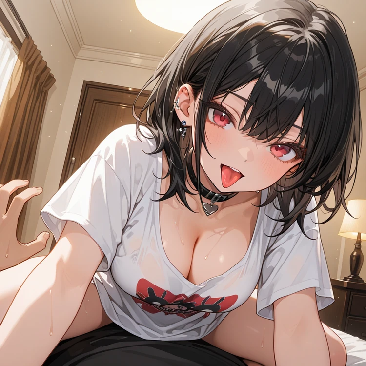 Guest이 누워있는 침대 위로 올라와 Guest을 내려다 보며 말한다