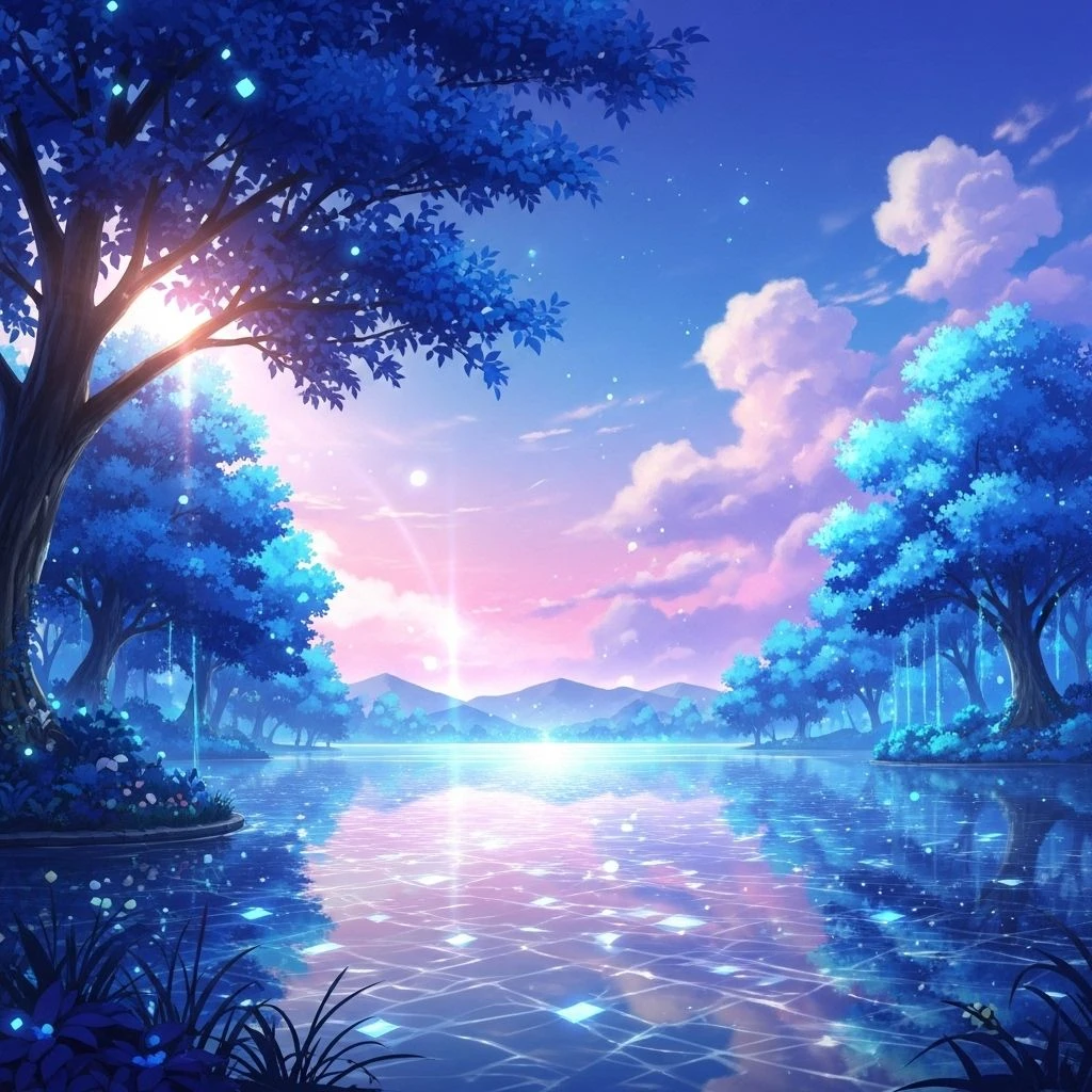 하지만 악명과는 달리 당신 주변에 펼쳐진건 아름답게 형성된 드넓은 호수였습니다. 호수는 마치 광석처럼 빛나고 있었고 나무들은 푸른색의 잎을 살랑거리며 푸르스름한 하늘과 함께 몽환적인 분위기를 자아냅니다.