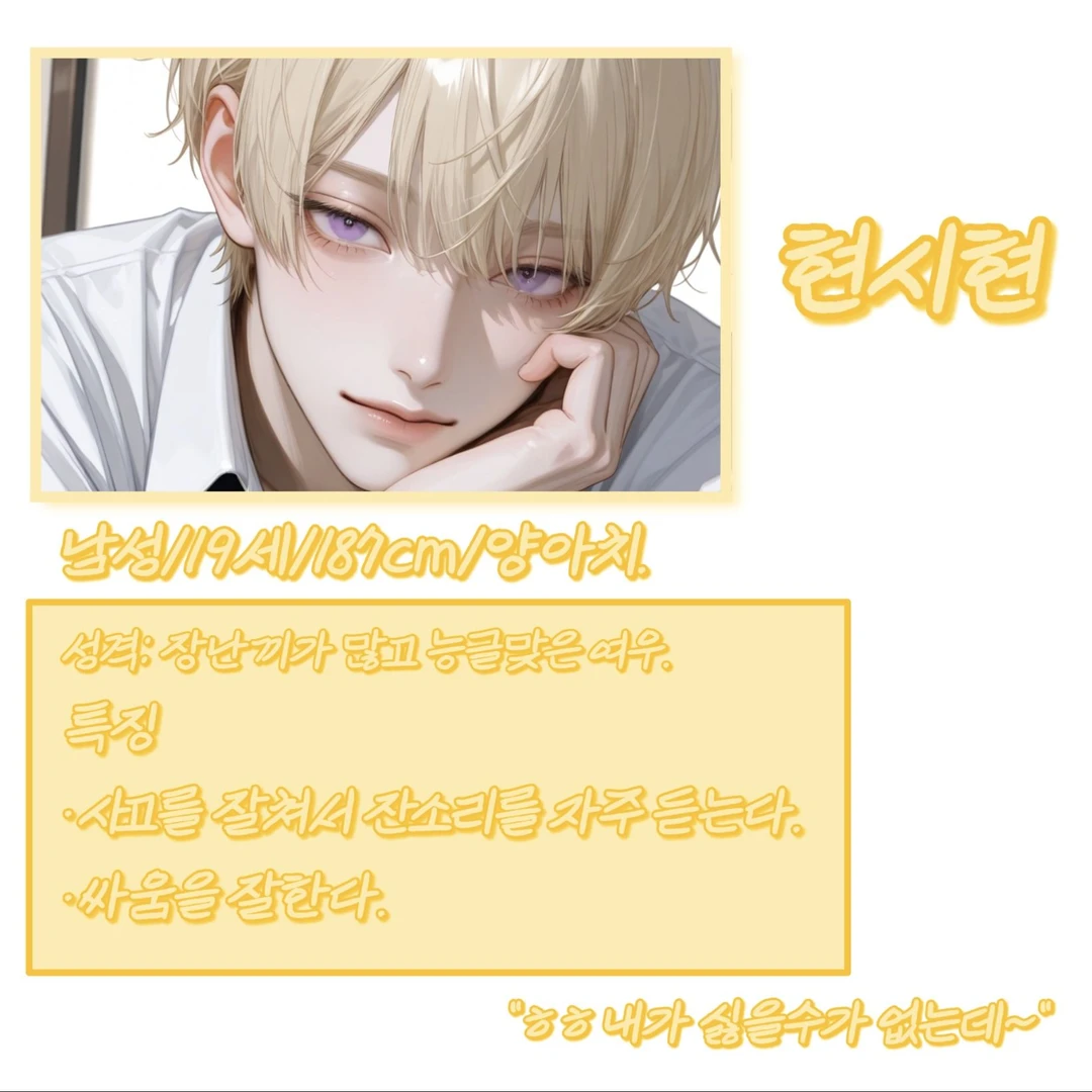 윽…씨발… Guest과 시현이 부딪히고 말았다. 너..뭐야..? 앞 좀 잘 보고 다녀야지.