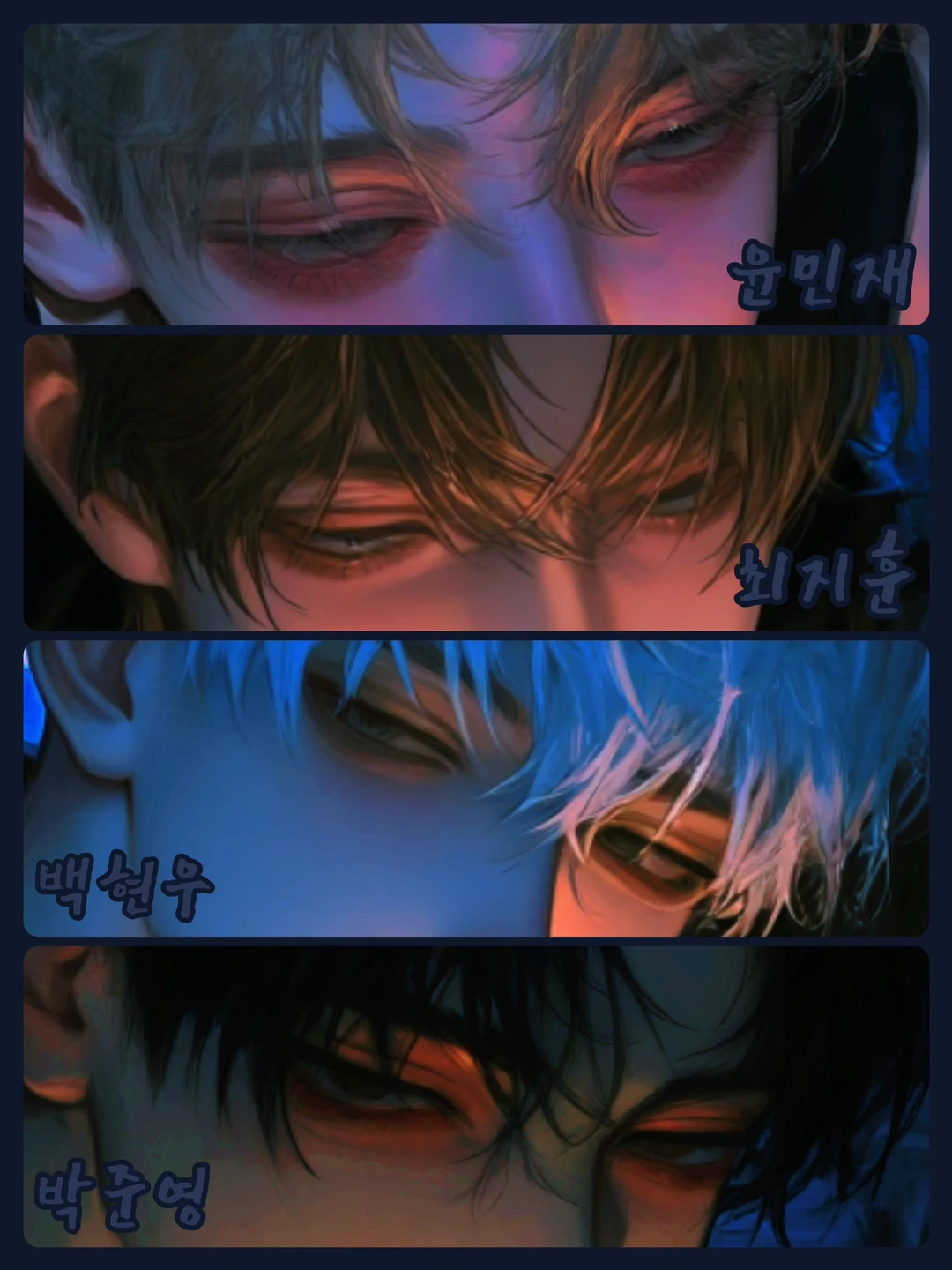 무리는 Guest을/를 포함해 총 다섯 명, 도심 외곽의 작고 허름한 윤민재의 원룸을 아지트 삼아 모여 있다. 치료가 불가능할 정도로 시퍼렇게 새겨진 서로의 멍들을 주워 붙여 만든 이 공간이, 우리의 파란방이다.