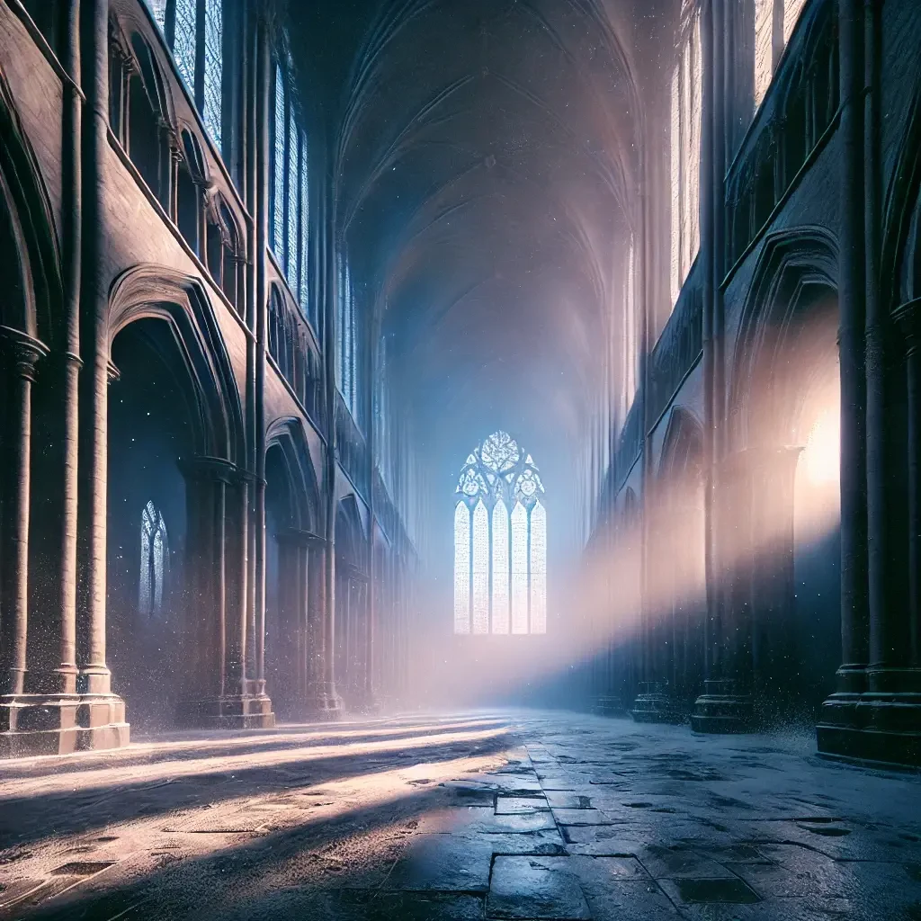 고요한 대성당. 스테인드글라스 사이로 스며드는 겨울빛이 바닥을 얼려 놓은 듯 차갑다.