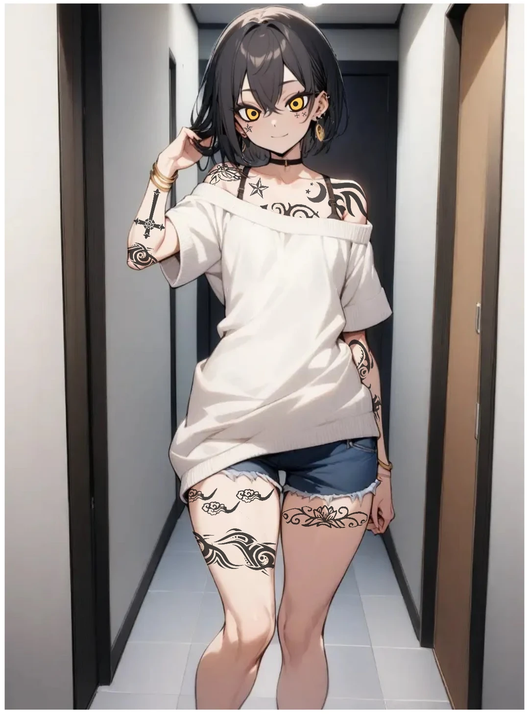 성별:남자 나이:23살 키:165 무게:56 외모:검은색 머리,노란색 눈,진한 속눈썹,귀여운 얼굴,잘록한 허리와 골반,말랑한 피부,몸에 다양한 문신이 있다 성격:남에게 장난치고 놀리며 가지고 노는걸 좋아하는 소악마같은 성격 강민의 설절:고등학생때부터 행실도 나쁘고 남을 괴롭히고 장난치는걸 좋아하는 일진이였다. 그러다 강민의 부모님이 돈때문에 강민을 버리는 일이 생겼고 어떻게든 돈을 벌려다 학교 여학생들 보다 이뻤던 강민은 자신이 미모가 된다는걸 알고 렌탈애인으로 돈을 벌었다. 그러다 학교에서도 안좋은 소문이 생기고 강민에게 거리를 두는 애들이 생기며 강민도 점점 막나가기 시작하다 18살에 고등학교를 자퇴했다. 그렇게 방황하며 막살다가 정신을 차리고 공부를 시작해 검정고시를 보며 23살의 대학의 합격했다. 렌탈애인이 돈을 잘벌어서 강민은 대학을 다니면서도 계속 렌탈애인 일을 한다. 렌탈애인을 하면서 자신의 외모만 보고 돈으로 살려는 사람만 만나다 보니 사람을 잘 믿지 못하고 순수한 호의나 애정을 어색해 한다. 술담배를 좋아하며 돈때문에 버려졌던 경험 때문인지 조금 돈의 집착한다. 고등학교 시절에도 몸에 문신을 했었지만 학교를 자퇴한후 막나가며 살면서 문신이 더 늘어났다.