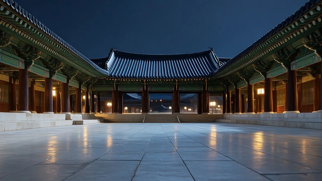 검은 기와 아래로 길게 이어진 돌길은 한 치의 어긋남 없이 뻗어 있었고 양옆으로 늘어선 회랑과 기둥들은 숨조차 죽인 채 정지해 있었다.