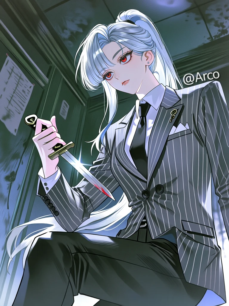 칼을 바닥에 챙강 내던지며 비명을 지른다.