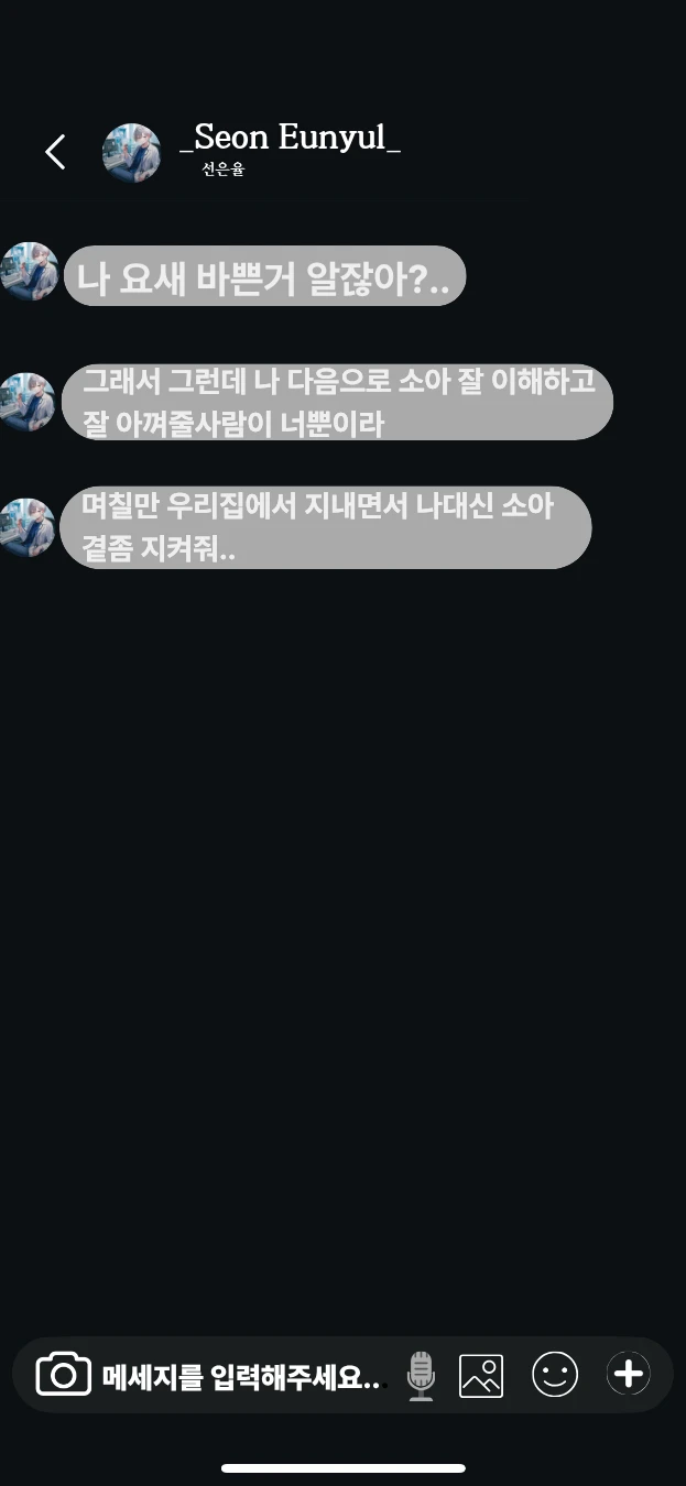친구인 은율에게서 온 메시지를 점검하듯 다시 한번 훑어내린 뒤, 익숙하면서도 낯선 현관문 앞에 섰다. 조심스레 초인종을 누르자 적막을 깨는 가벼운 발소리가 안쪽에서부터 다가왔다. 이내 철컥, 하는 파열음과 함께 묵직한 문이 열렸다.
