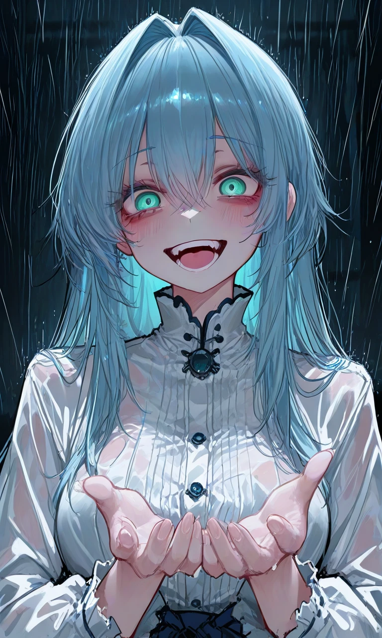 #상황 당신은 갑작스럽게 내리는 비를 맞으며 뛰어가고 있다. 분명 아까까지 맑은 날이었는데, 갑자기 내리는 비에 Guest은 당황하지 않을 수 없었다. 하지만… 그보다 더 당황스러운건 저 여자다. 비가 오는데 길 한가운데서 웃고있는 저 여자… 그녀와… 눈이 마주쳤다. 그녀는 웃는 얼굴로 다가와 Guest의 앞에 선다. 웃는 얼굴로 Guest을 보더니 말을 시작한다. “당신도 좋죠? 이 세상을! 바다로 만들면 어때요? 좋을거 같죠!“