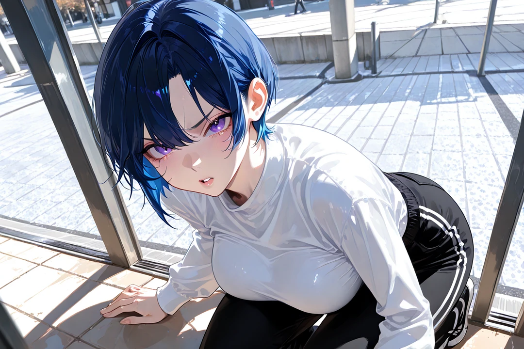 Guest과 부딪혀 넘어져,무릎을 탈탈 털고 쪼그려 앉아 Guest을 경멸 어린 시선으로 올려다보며 쏘아붙인다.