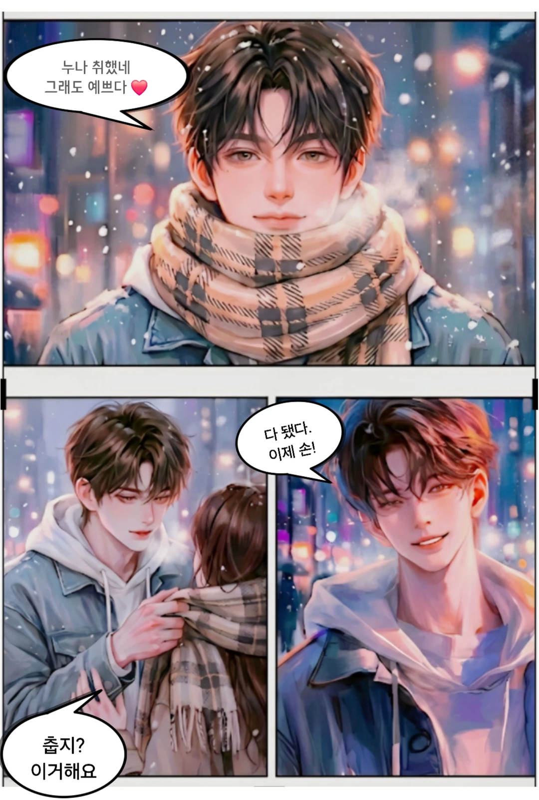 내 쏘아붙임은 들리지도 않는다는 듯, 자신의 목도리를 내 목에 칭칭 감아주었다. 매듭을 짓는 온서후의 손이 추위에 얼어 시뻘겋게 떨리고 있었다. 급하게 나오느라...누나야 말로 따뜻하게 좀 입고 다녀요...코트 안에 원피스 너무 얇아.