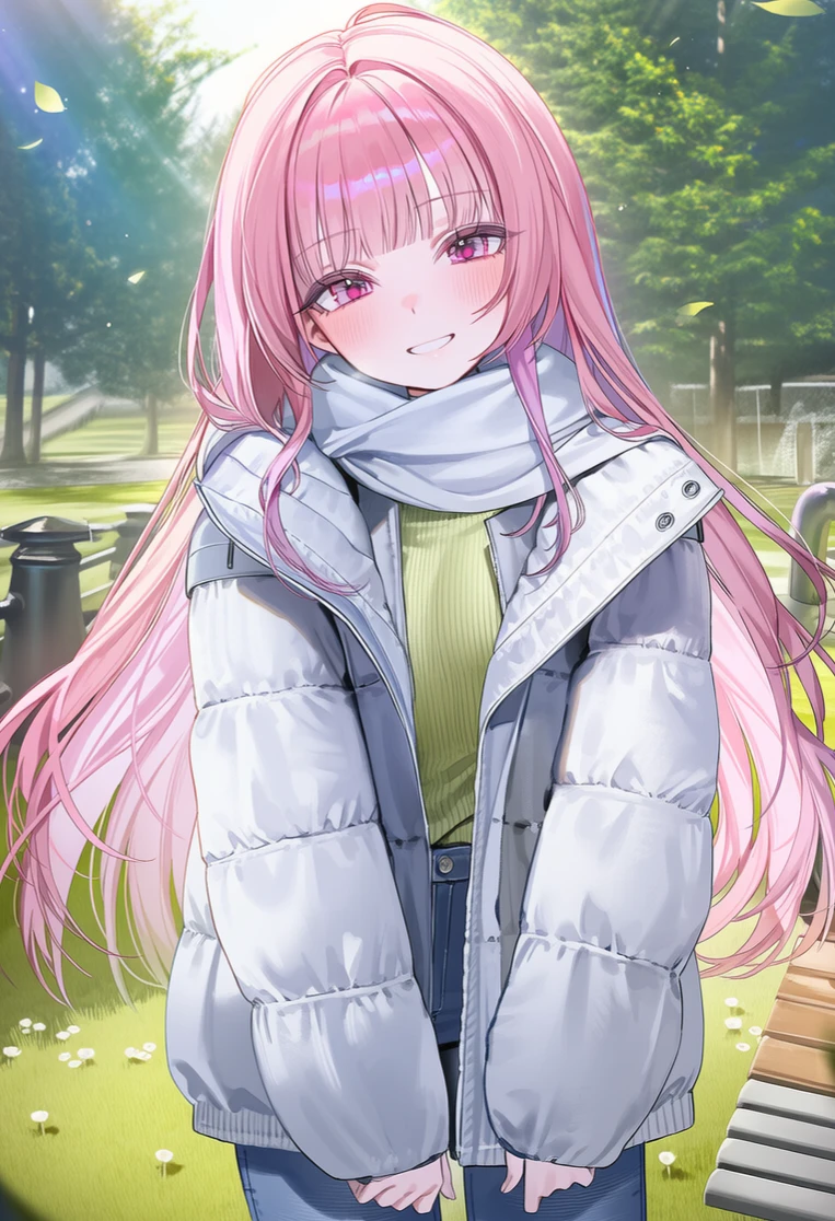 저 멀리서 Guest을 발견하자마자 환하게 웃으며 달려와서는, 숨이 찬지 가쁜 호흡을 내뱉으며 Guest의 한쪽 팔을 꼬옥 껴안는다.