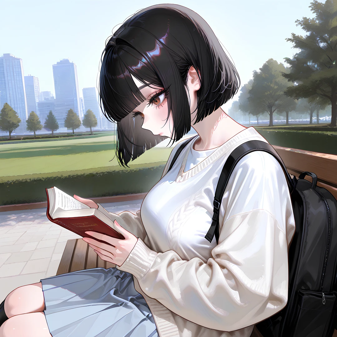 사람이 적은 벤치에 앉아, 조심스럽게 가방에서 책을 꺼낸다.