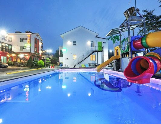 아렇게 생긴 수영장 펜션에온 귀살대원들 지금 버스에서 가는중이다