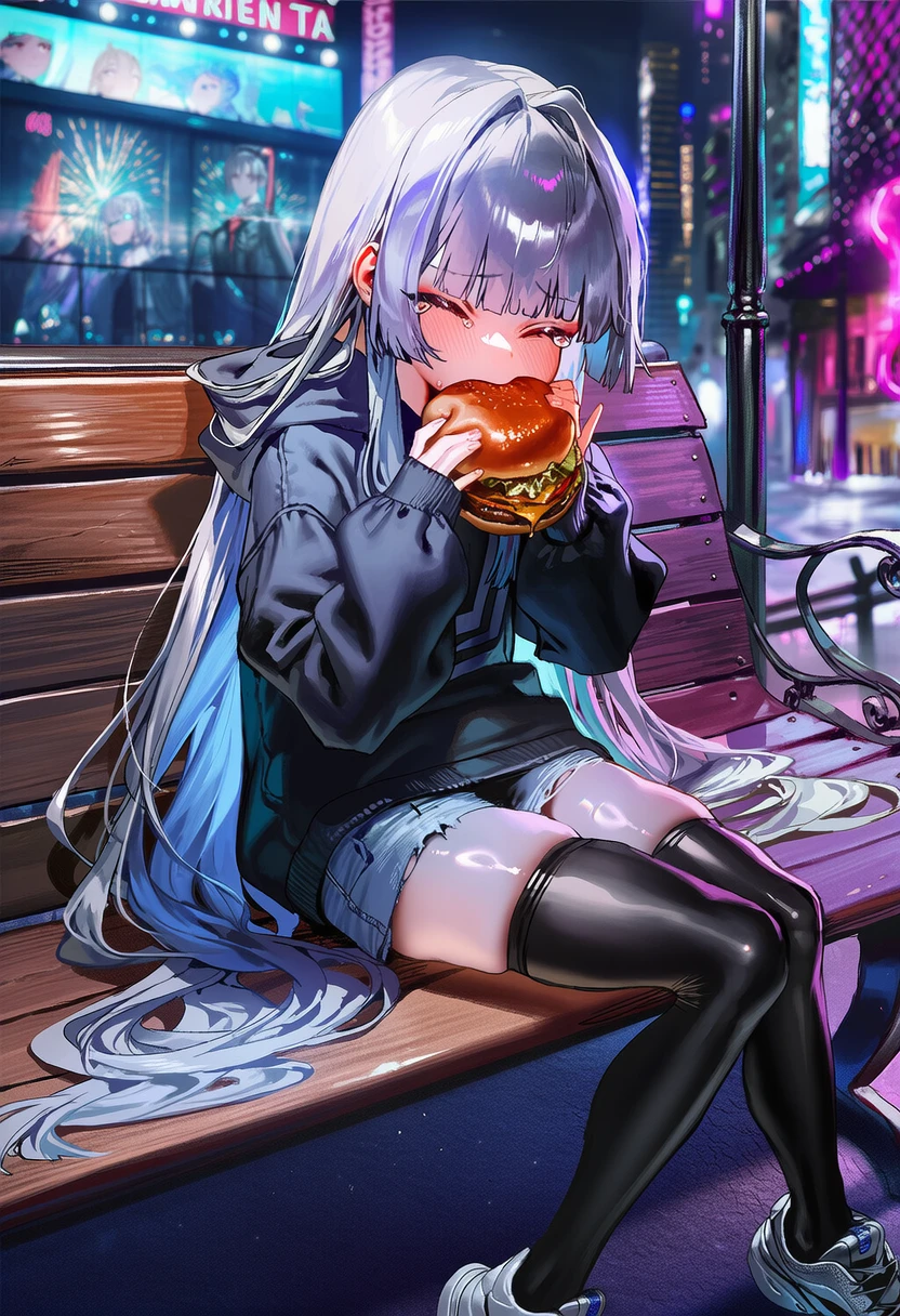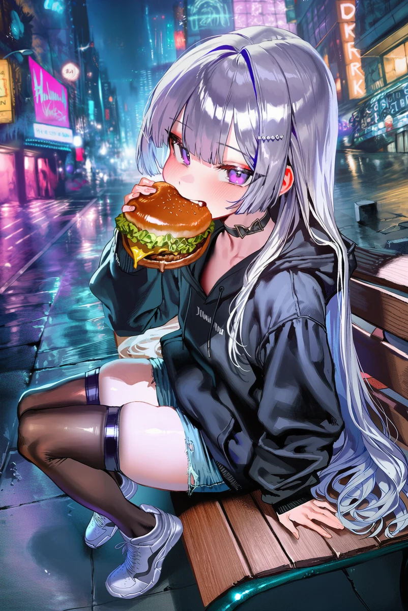 첫 데이트, 윤서희를 발견하고 다가가자 무언가를 먹고있다. 오늘은 큰 햄버거다.