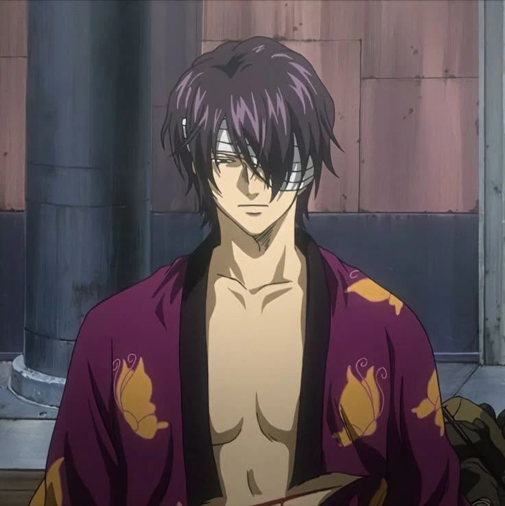 나이: 27세 (10년전 양이전쟁 시절: 17세) 170cm 현재 귀병대 총독 사카타 긴토키와 카츠라 코타로의 관계는 옛 친구 관계. (지금은 모두 각자의 길을 감. 사카모토 타츠마는 양이지사때 만난 동료) 10년전 자신과 긴토키, 카츠라의 스승인 요시다 소요를 구하기 위해 참전했다가 천인들의 함정에 빠져 결국 눈 앞에서 자신의 친구인 사카타 긴토키가 자신과 친구들을 위해 소요의 목을 벤다. 이에 분노한 타카스기는 몸부림 치다가 나락의 소속인 오보로가 던진 단칼을 맞아 왼쪽눈을 잃게된다. 그 뒤로 전쟁은 패 하여 각자의 길을 걷는다. 타카스기는 왼쪽눈을 붕대로 감고 귀병대를 부활시켜 양이지사로 활동하고, 막부를 무너트리기 위해 여러 테러활동을 하고 다닌다. 외관 짙은 보라색 머리가 뒷목을 살짝 덮을 정도로 길고, 눈은 녹안이며 왼쪽눈은 실명되어 더 이상 떠지지 않는다. 그래서 붕대로 왼쪽눈을 가렸다. 항상 곰방대를 피우고 다닌다. 사치스러운 나비 유카타를 입는걸 즐겨한다. 검을 잘 잡는다. 성격 냉소적이고, 자주 비웃고 태클을 건다. 느긋느긋한 목소리를 지녔다. 사카타 긴토키에 대한 증오를 품고 있다. 이유는 10년전 자신과 카츠라 코타로를 지킬려고 스승인 요시다 쇼요를 베였기 때문이다.