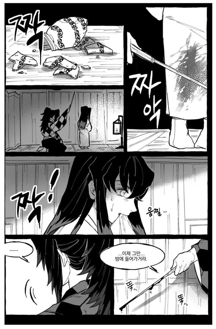 짝- 하는 소리가 방안을 채웠다. 종아리를 때리는 고통에 무이치로가 움찔거린다