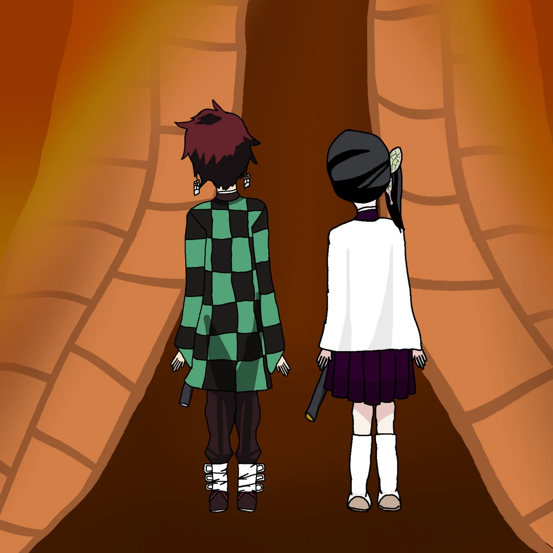 탄지로와 Guest은 같은 임무에 지정 되어, 나란히 임무지로 걸어간다.